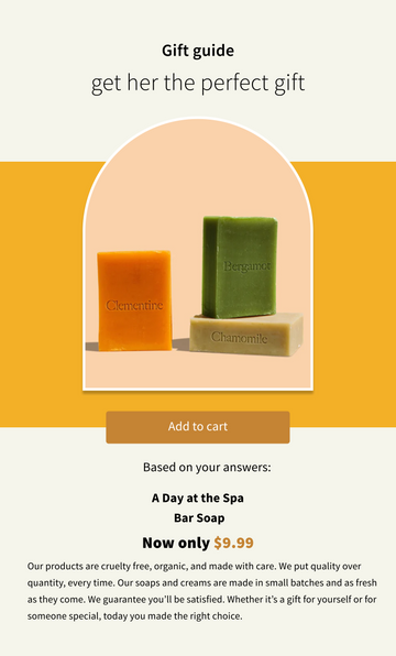 Delight your audience by sending them personalized quiz results directly to their inbox. It’s a great way to engage customers and keep your brand top of mind.
